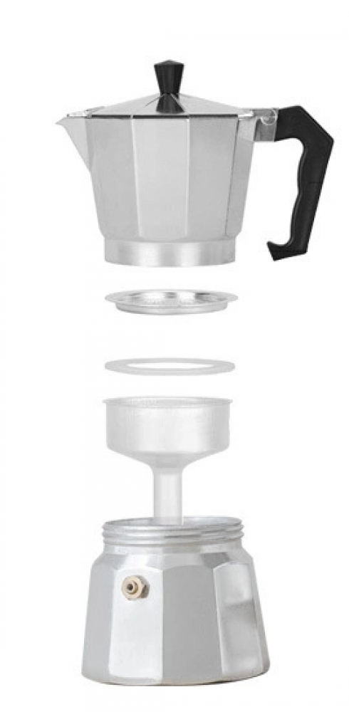 تصميم بسيط وعملي لسهولة الاستخدام والتنظيف يتكون من ثلاثة أجزاء فقط (الغرفة السفلية للماء، السلة الوسطى للبن المطحون، والغرفة العلوية لتجميع القهوة) ما يسهل عملية التحضير ويضمن لك قهوة مثالية كل مرة.